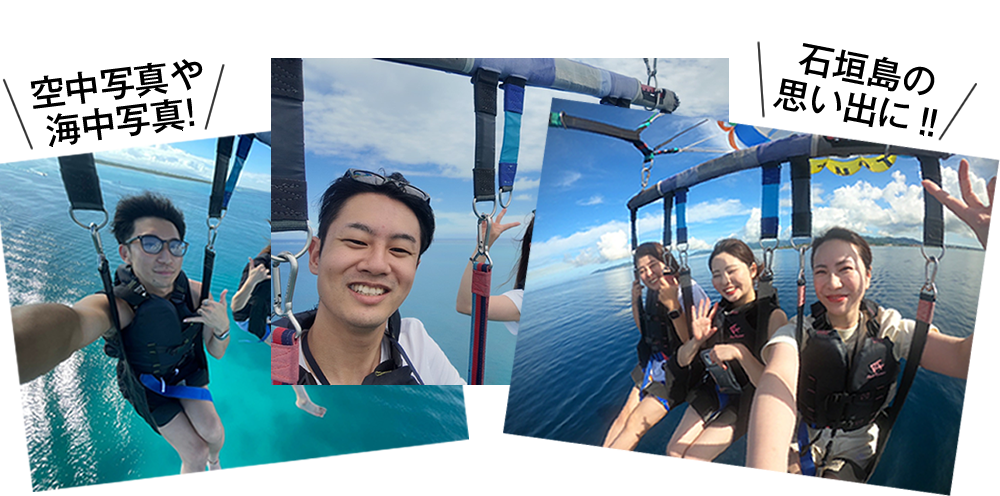上空でパラセーリング体験中や、シュノーケリングや体験ダイビング中の水中写真など、スタッフが撮影した動画や写真を無料でプレゼントさせていただきます!