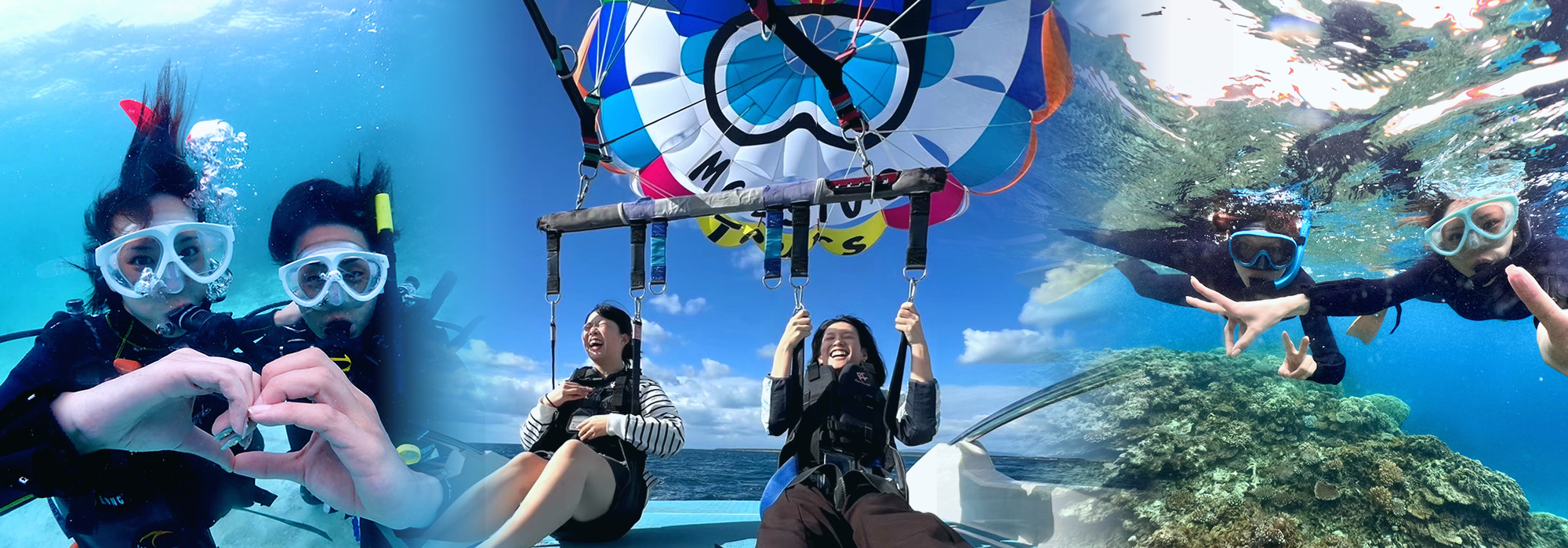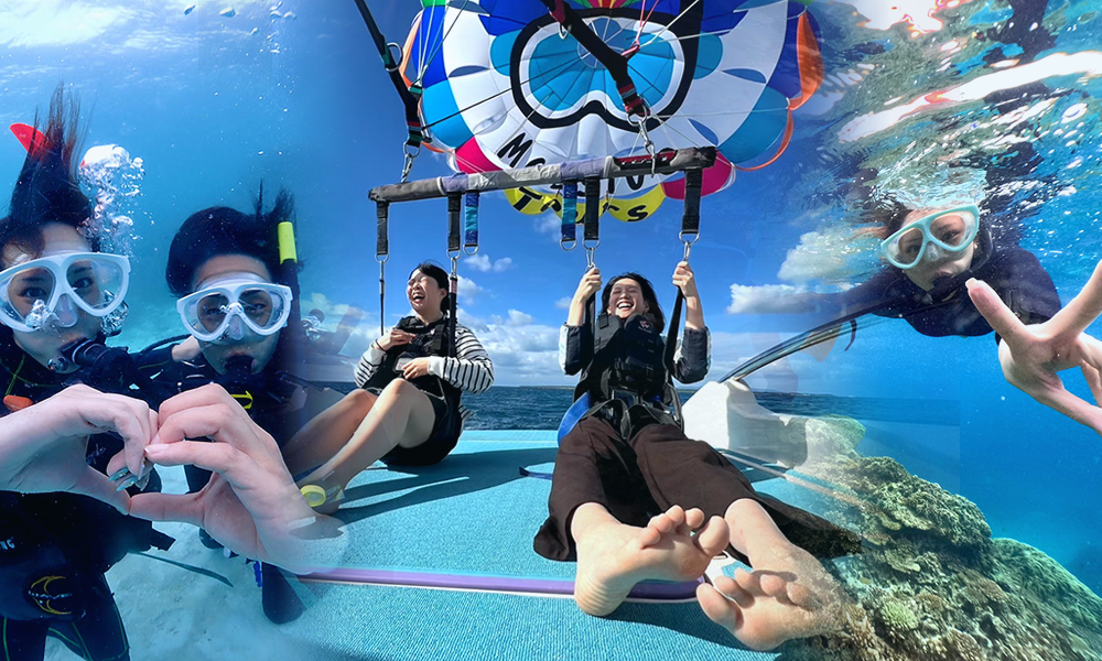 上空でパラセーリング体験中や、シュノーケリングや体験ダイビング中の水中写真など、スタッフが撮影した動画や写真を無料でプレゼントさせていただきます!
